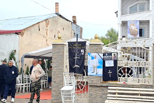 De asemenea, la poarta vilei familiei lui Auraș se află o orchestră de lăutari, care îi întâmpină cu muzică de jale pe cei care vin să-și ia „adio” de la tânărul interlop.