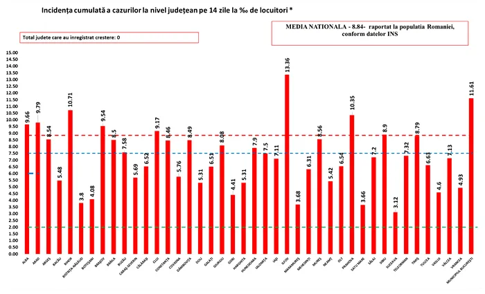Bucureștiul și 10 județe au peste 50% din cazurile noi de COVID-19