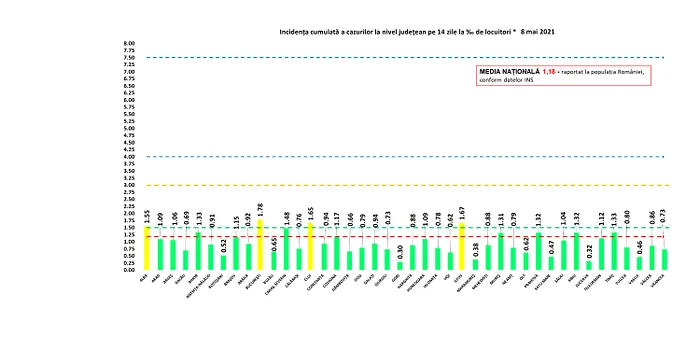 Coeficientul infectărilor cumulate la 14 zile, raportate la 1.000 de locuitori este calculat de către Direcțiile de Sănătate Publică, la nivelul Municipiului București și al județelor.