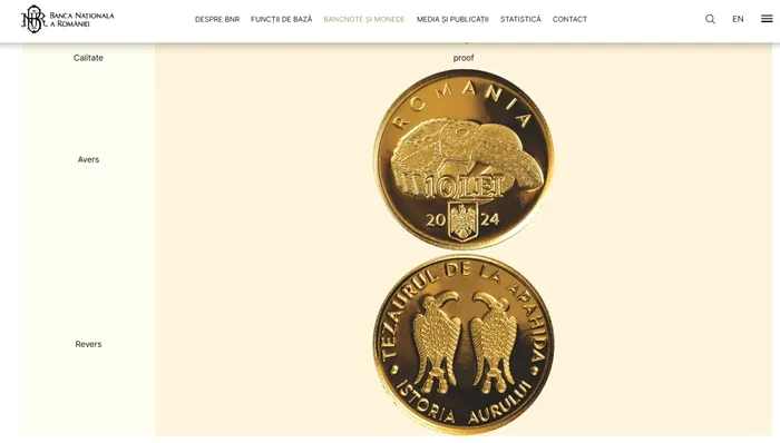 BNR lansează în circuitul numismatic o nouă monedă din aur. Aceasta va avea valoarea nominală de 10 lei și are tema „Istoria aurului – Tezaurul de la Apahida”. Iată cât va costa o singură piesă și de unde poate fi achiziționată pentru a o adăuga la colecție.
