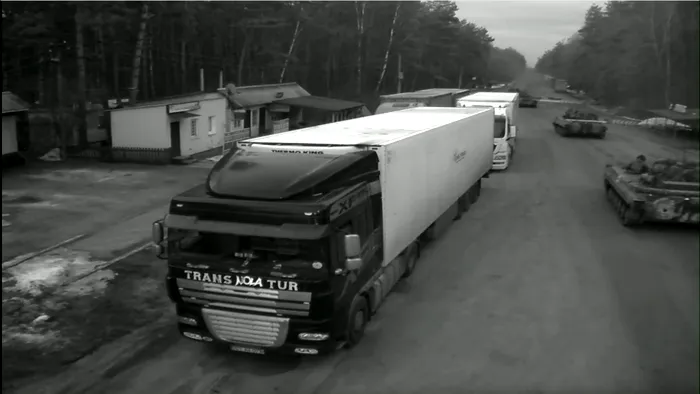 Imaginile au fost surprinse la granița dintree Senkivka, Ucraina, și Veselovka, Belarus. Coloana a fost văzută intrând în Ucraina în jurul orei 6:48 a.m., ora locală.