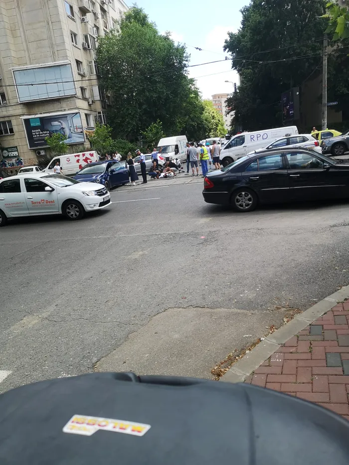 Breaking news. Motociclist de la Rutieră, lovit de o mașină în București! Polițistul a fost dus la spital pentru îngrijiri medicale