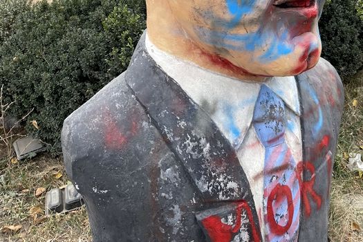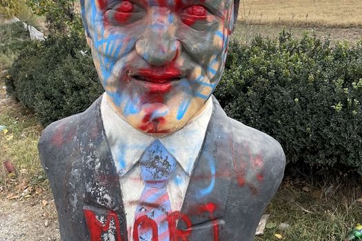 Bustul lui Gigi Becali din Scornicești, județul Olt, a fost vandalizat. Statuia patronului echipei de fotbal FCSB a fost vopsită, iar pe piept este scris mesajul „Mori”.