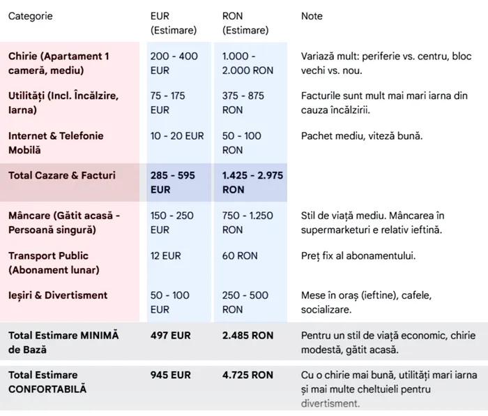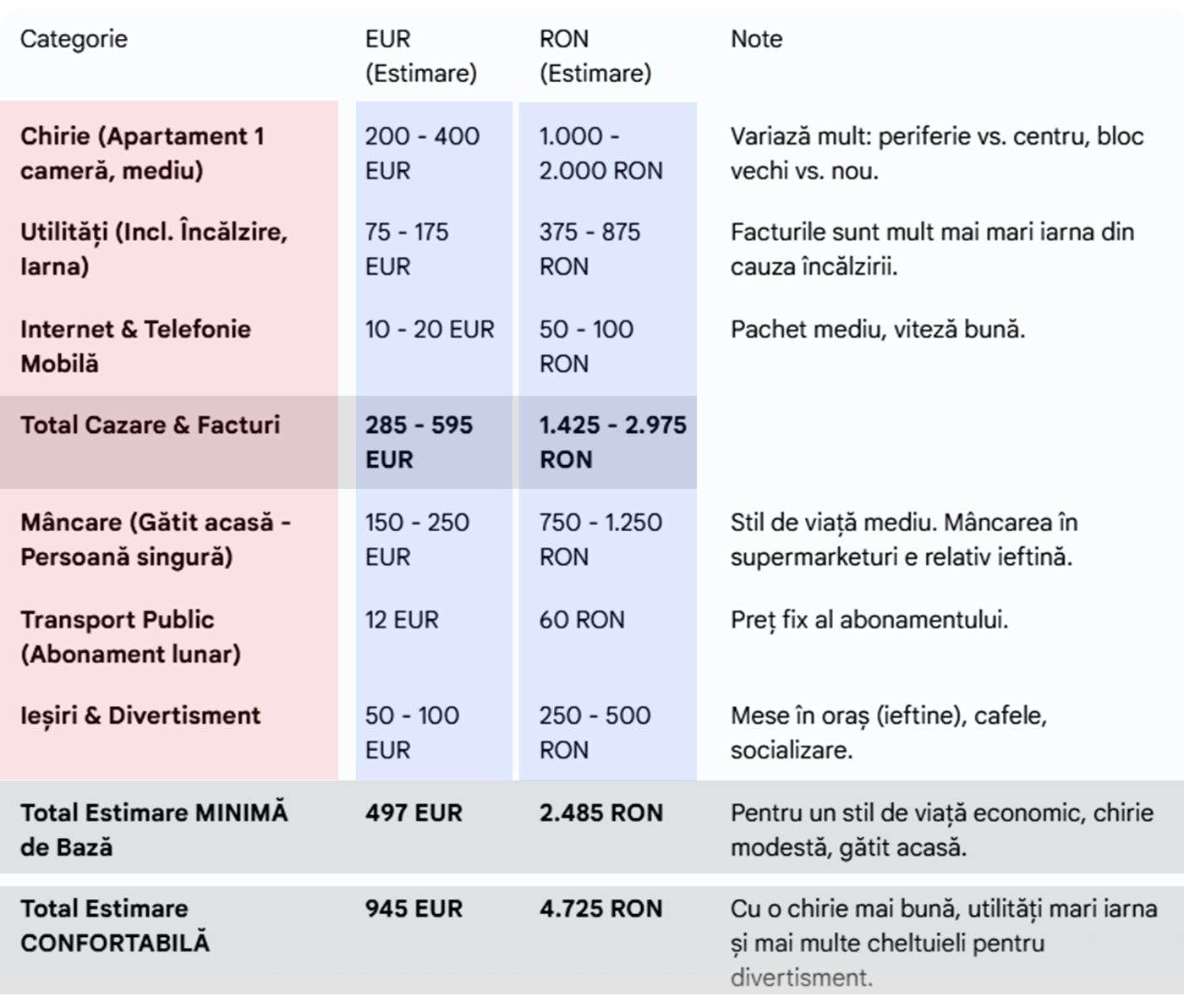 Utilitățile pe timpul iernii te pot costa între 375 și 875 Ron, fiind ceva mai piperate în sezonul rece. La internet și telefonie se mai adugă încă 100 de lei. Dacă mai pui și mâncarea gătită acasă, adaugi între 750 și 1.250 lei la cheltuială. Transportul public costă 60 de lei. Mai pui pentru ieșiri între 250 și 500 lei. Astfel, dacă ești pe „modul economie”, poți trăi o lună în Chișinău cu 2,485 lei, în timp ce pentru o ședere mai confortabilă poți plăti până la 4.725 lei pe lună.