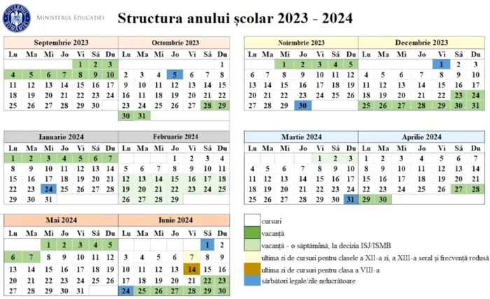 Calendarul anului școlar 2023-2024