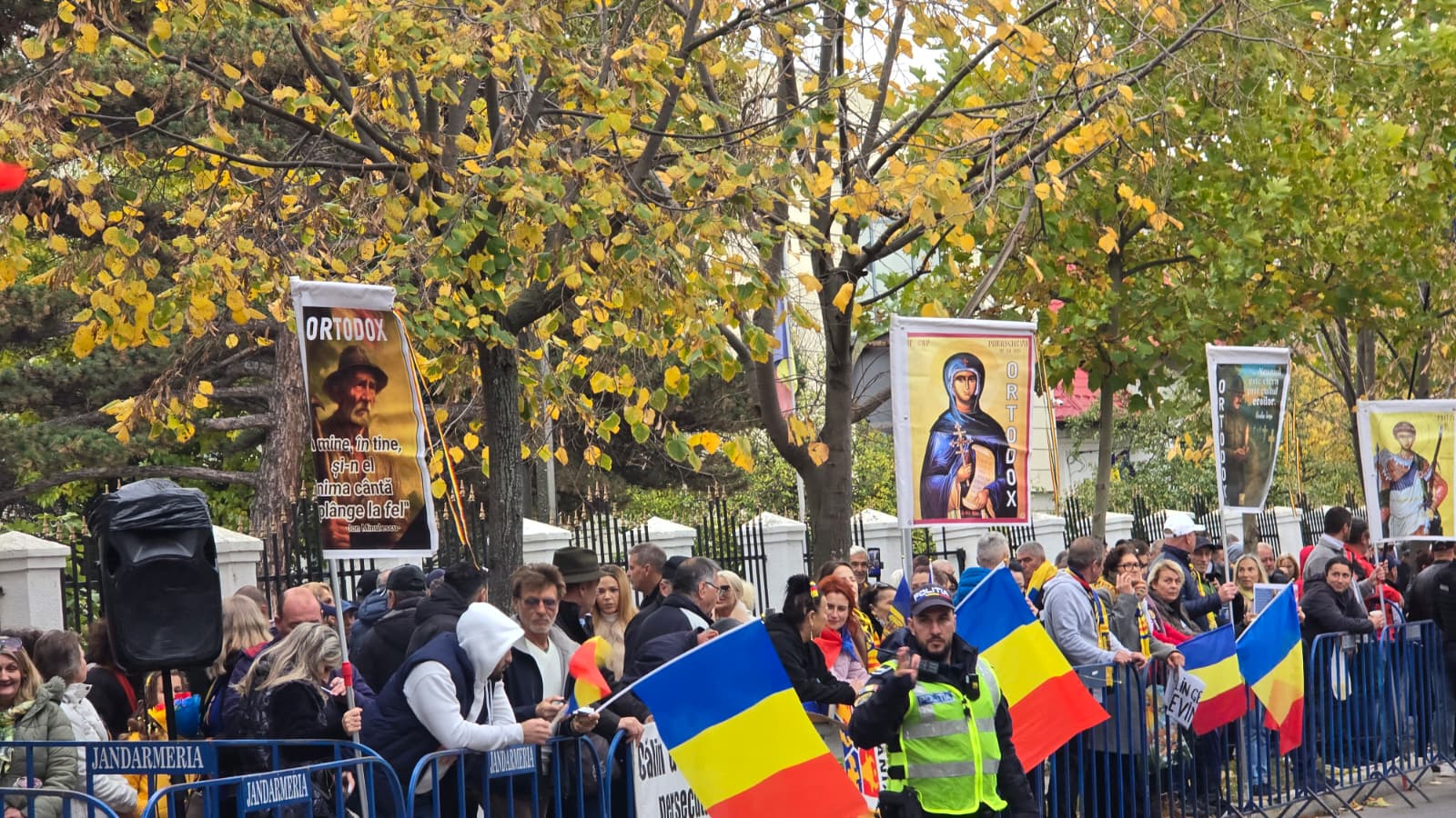 Oamenii au adus icoane, scandează „Călin Georgescu, președinte!” și cântă piese patriotice.