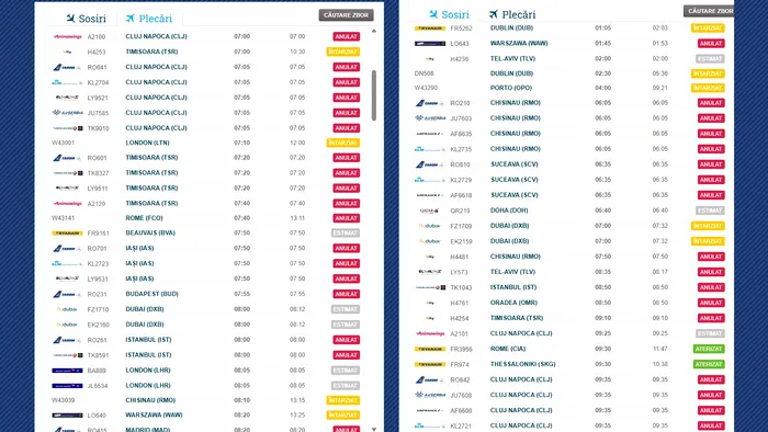 Update 12:00: Lista cu zborurile anulate din cazua condițiilor meteo.