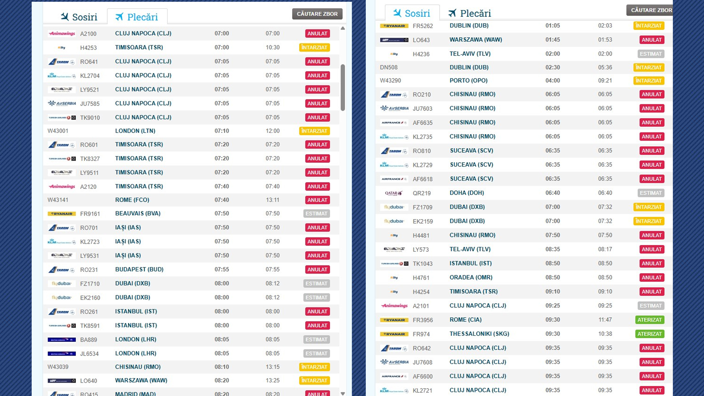 Update 12:00: Lista cu zborurile anulate din cazua condițiilor meteo.