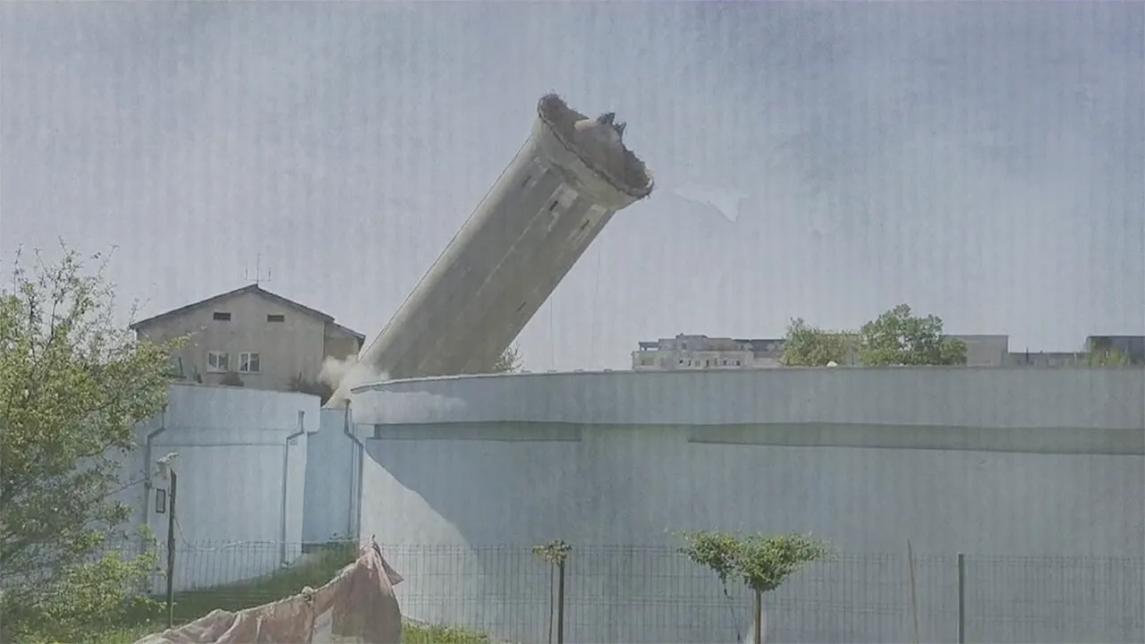 Oamenii au stat cu sufletul la gură până când mastodontul a fost pus la pământ. Mulți își amintesc de această construcție, veche de 50 de ani, pentru că aici se stocau peste 500 de metri cubi de apă.