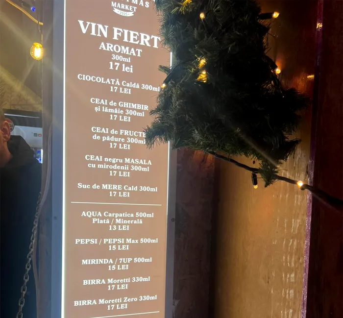 De partea cealaltă, un vin fiert costă 17 lei, la fel ca un pahar de ciocolata caldă, ceaiul sau sucul de mere cald. Pentru un suc la 500 ml trebuie să scoți din buzunar 15 lei, o apă plată este 13 lei, iau o bere de 330 ml costă 17 lei.