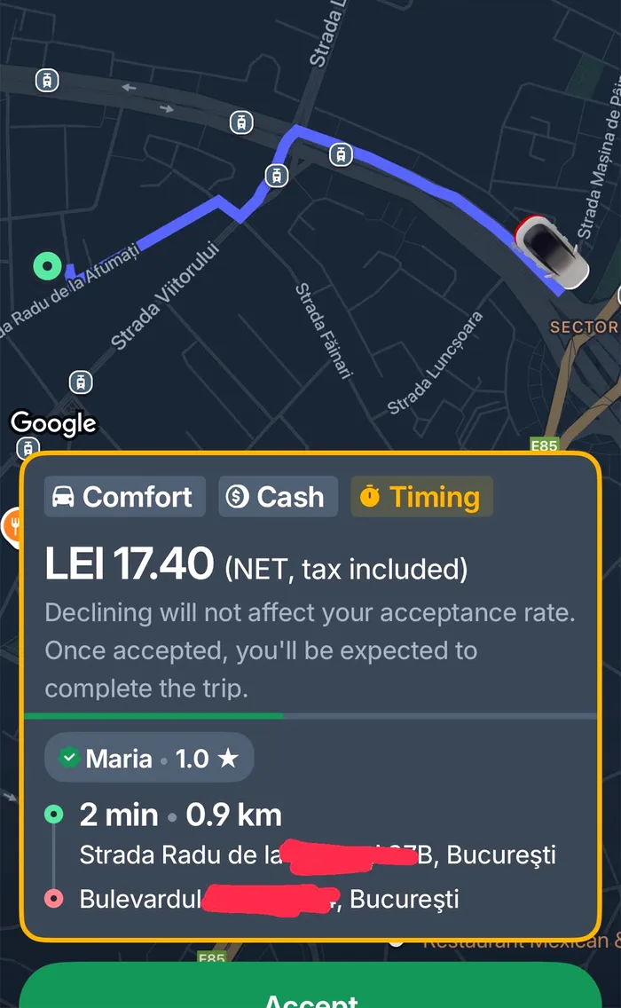 Cât a plătit Maria pentru o CURSĂ de doar 900 metri în București, cu Uber