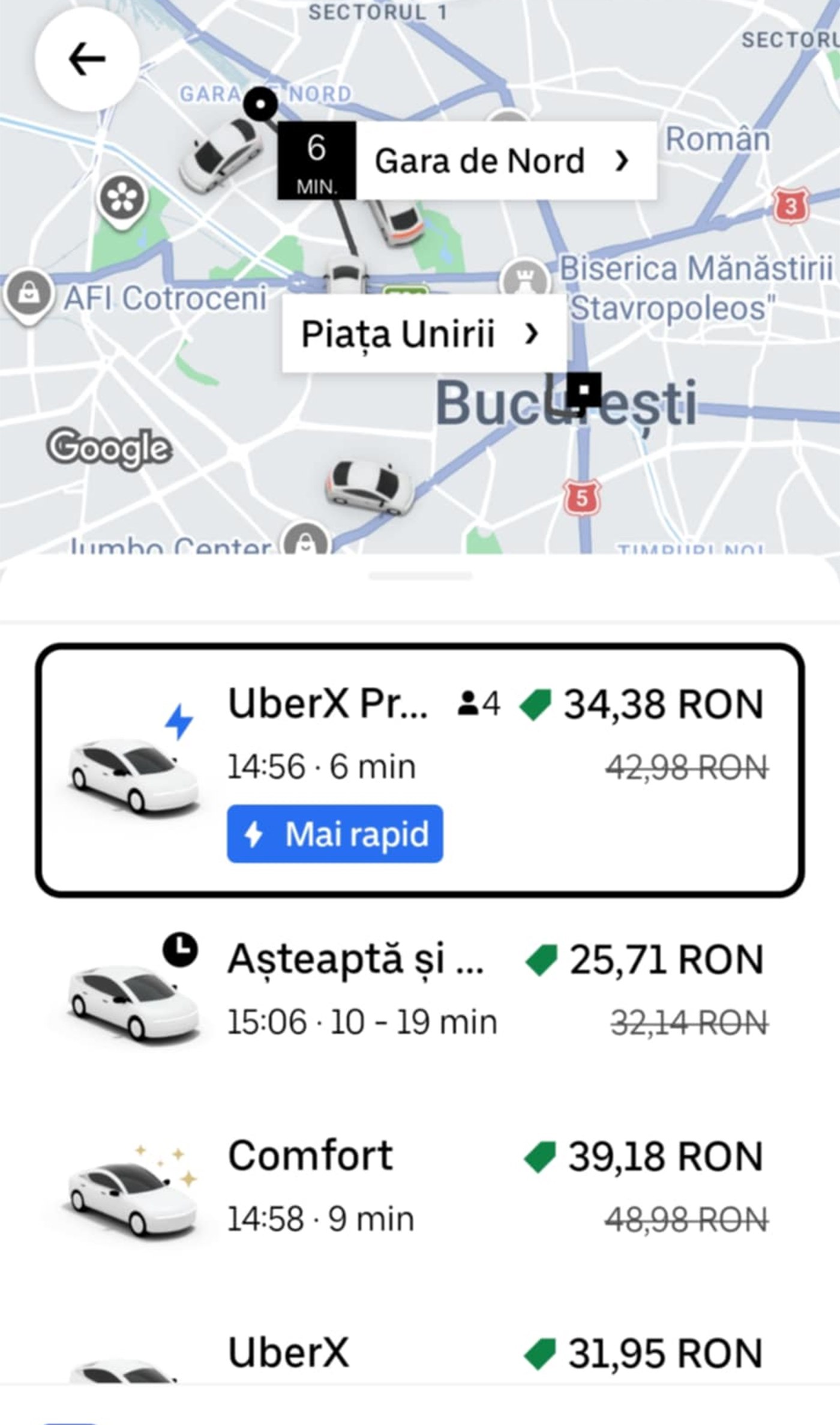 Cât a plătit un bucureștean ieri pentru o cursă Uber de la Gara de Nord, până la Piața Unirii