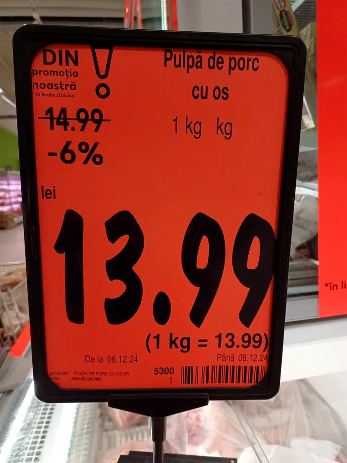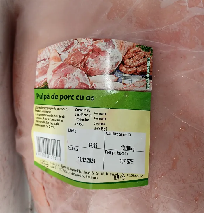 De exemplu, Kaufland România vinde pulpă de porc și are un superpreț, după cum arată anunțul. Vorbim despre pulpă de porc cu os, adusă din Germania și vândută românilor la „doar” 13,99 lei/kg.