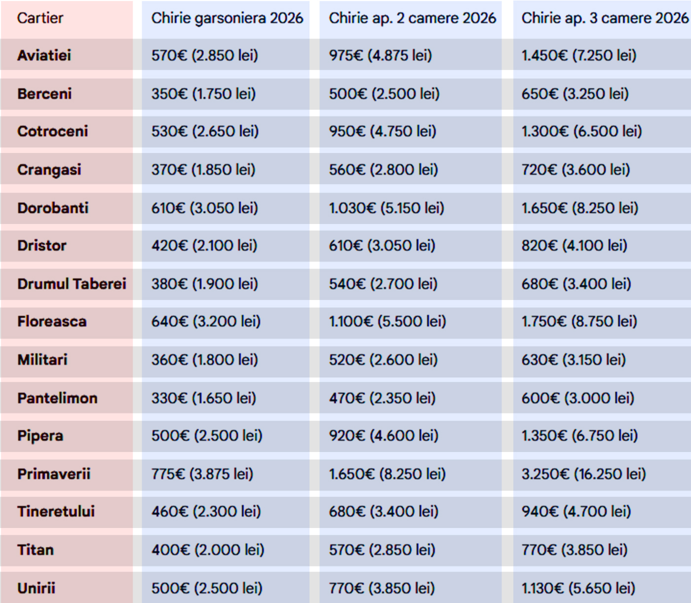 Prima pagină » Actualitate » Cât costă o chirie în 2026 în București, în funcție de cartier, pentru garsonieră sau apartament cu 2 și 3 camere