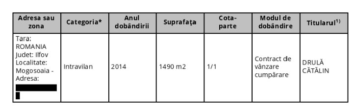Cătălin Drulă deține un teren intravilan în Mogoșoaia (Ilfov), cu o suprafață de 1.490 de metri pătrați, cumpărat în 2014, precum și un autoturism BMW fabricat în 2012, achiziționat prin contract de vânzare-cumpărare.