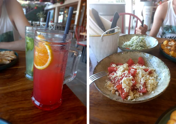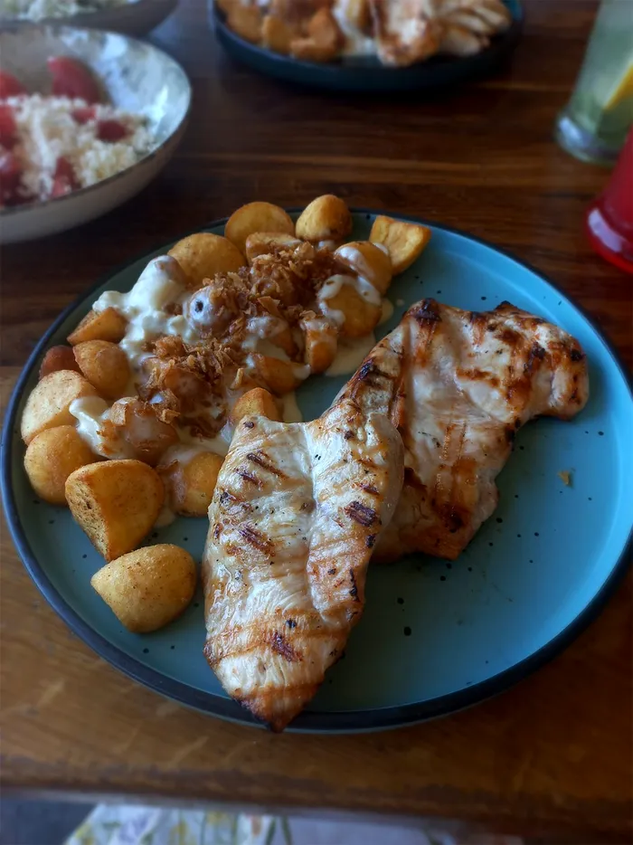 Un șnițel de pui la acest „împinge tava” din Costinești costă 7,5 lei, 100 de grame. Dacă porția ar avea, să zicem, 200 de grame, acesta ar ajunge pe nota de plată la 15 lei. În cazul în care adăugați și o porți de piure de cartofi, la factură se mai adaugă 8,5 lei, ceea ce duce la un total de 23,5 lei, adică mai puțin de 5 euro, pentru o masă copioasă de prânz.