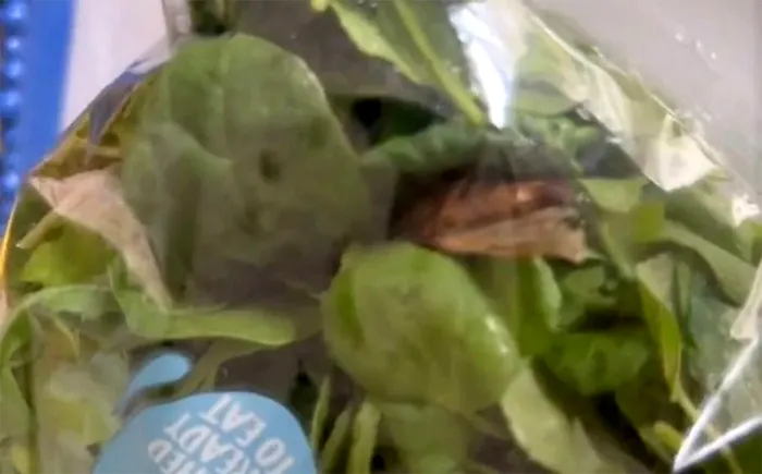 O molie uriașă, încă vie, se mișca printre frunzele de saltă. ”Ireal. Tocmai am deschis o pungă de salată… și acest gândac este încă viu în ea”, a spus femeia într-un clip postat pe rețelele de socializare.