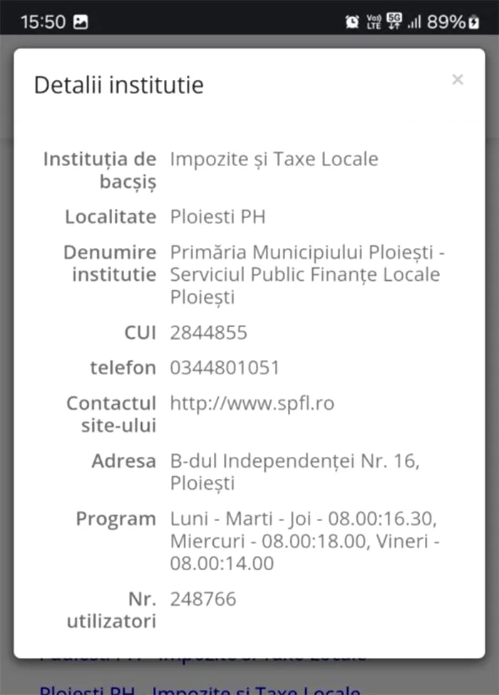 La capitolul „detalii instituție” i-a apărut pe telefonul mobil cuvântul „bacșiș”. Chiar și așa, contribuabilul nu a putut să-și achite taxele și impozitele însă dintr-un alt motiv, de ordin ethnic, pentru că sistemul informatic al Serviciului Public Finanțe Locale Ploiești a devenit functional abia de joi, 9 ianuarie.