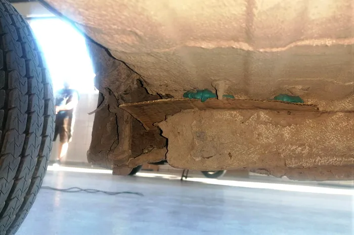 Șoferul unei dube de Servicii Funerare din Vaslui a mers la RAR pentru a face ITP-ul (Inspecția Tehnică Periodică). Inspectorii și-au făcut cruce când au privit sub caroseria vehiculului și au descoperit reparații cu spumă și carton.