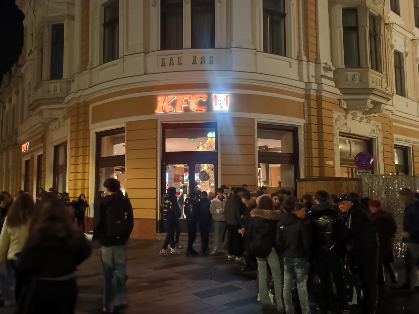 Astfel, după ce au vizitat Târgul de Crăciun din Cluj-Napoca, sute de clujeni au făcut coadă și s-au înghesuit la fast-food-ul KFC din Piața Unirii.
