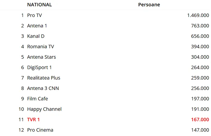 Cu o oră înainte de emisiunea lui Pătraru, adică pe intervalul Telejurnalului TVR, postul TVR 1 a avut o audienţă de aproape trei ori mai mică decât TVR 2. Cu serialul Comisarul Rex în grilă de la 19.00 la 20.00, TVR 2 a avut 1,3 puncte de rating, faţă de 0,4 la Jurnalul TVR 1.