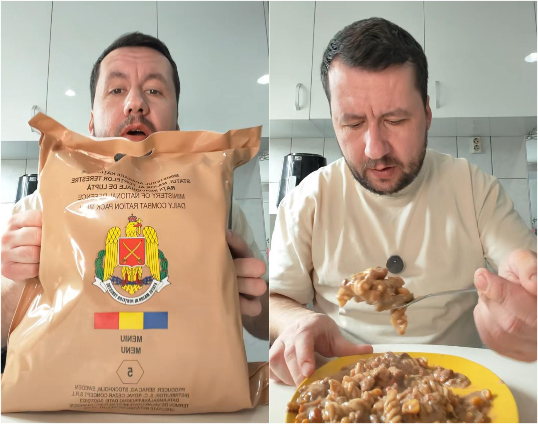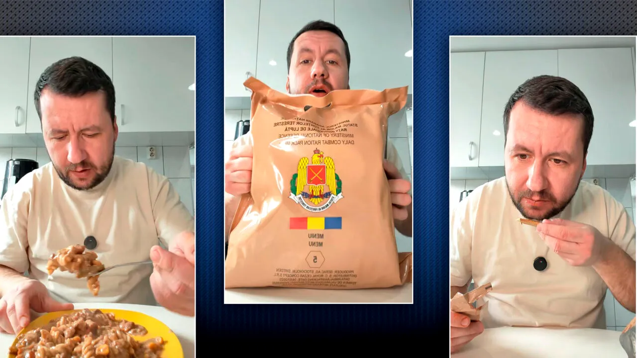 Un bărbat a primit un pachet ce conține rația militară românească pentru o zi întreagă. A testat meniul pe care îl primește un militar român și și-a expus impresiile legate de hrană.