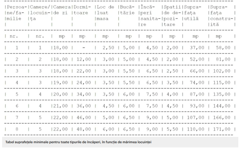 De asemenea, grupul sanitar are o barieră minimă de 4,5 metri pătrați, iar spațiile de depozitare trebuie să însumeze cel puțin 2 metri pătrați. Orice proiect care propune dimensiuni inferioare încalcă standardele impuse pentru autorizare.