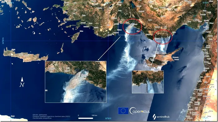 Turcia a doborât recordul istoric în 2021, iar în Grecia s-au înregistrat și 46 de grade Celsius. Aceste temperaturi împreună cu vremea secetoasă au dus incendiile de vegetație la un alt nivel. Un exemplu poate fi observat în imaginea 4.