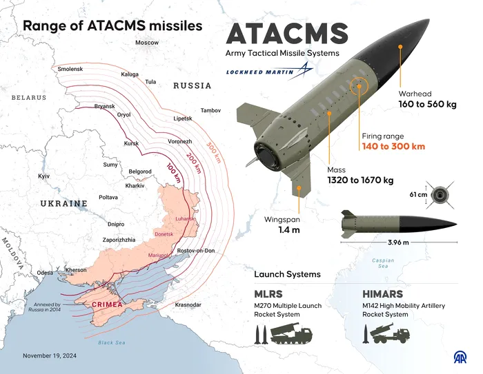 La mijlocul lunii noiembrie 2024, The New York Times și The Washington Post au dezvăluit că administrația Biden a autorizat Forțele Armate ale Ucrainei (AFU) să folosească ATACMS și rachete Storm Shadow/SCALP-EG cu rază lungă de acțiune pentru a lovi ținte pe teritoriul Rusiei.