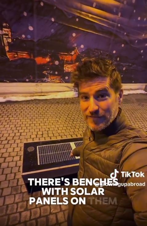 ​”Sunt în România şi trebuie să vă arăt un lucru grozav. Să ne imaginăm că vă plimbaţi, suntem în Sibiu, şi aveţi nevoie să vă încărcaţi telefonul. Sunt bănci cu panouri fotovoltaice instalate. Incredibil! Dacă pui telefonul jos ţi-l încarcă. Cât de idioţi suntem noi ceilalţi?! Ar trebui să facem asta peste tot”, este reacţia bărbatului, pe TikTok, așa cum se poate vedea mai sus.