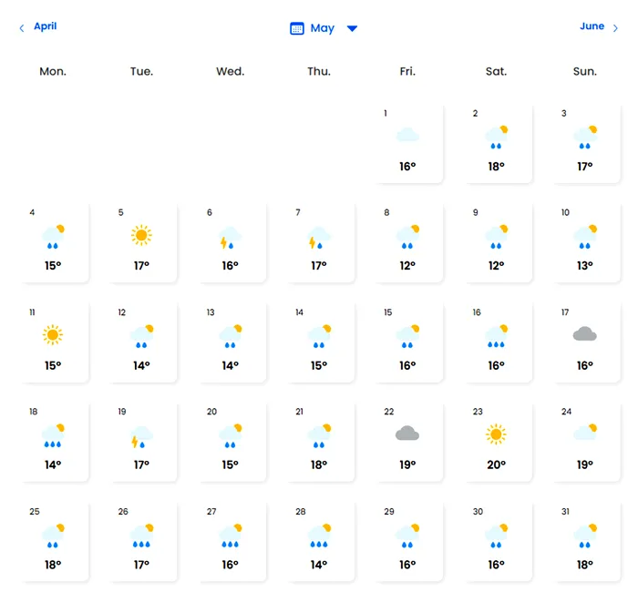 În fine, în luna mai, într-o singură zi, pe 23, se vor atinge 20 de grade Celsius. În rest, sunt așteptate ploi puternice, însoțite de descărcări electrice.