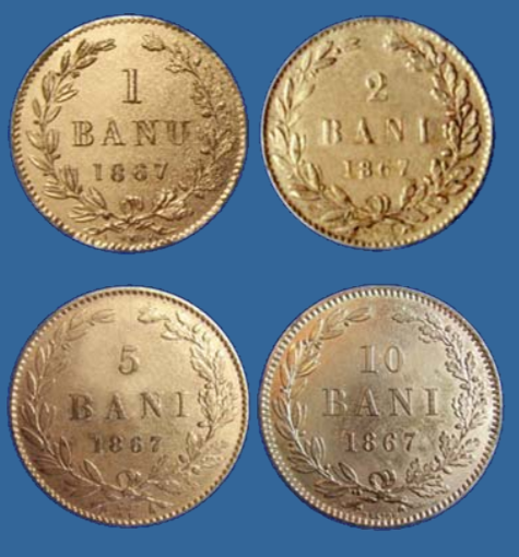 În anul 2007, cu prilejul aniversării a 140 de ani de la înfiinţarea Sistemului Monetar Naţional, Banca Naţională a României a bătut în aur replici după primele monede de circulaţie româneşti, banii din 1867.