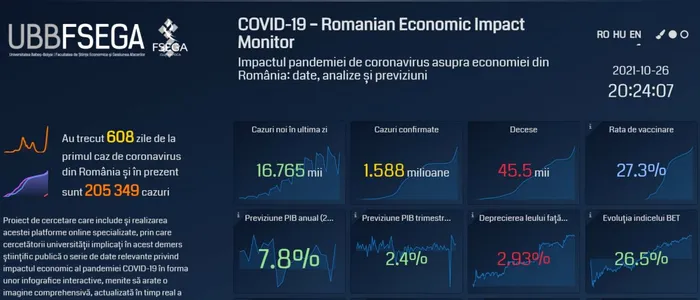 Proiectul de cercetare denumit COVID-19: Romanian Economic Impact Monitor monitorizează în timp real evoluţia pandemiei, respectiv starea economică a ţării, oferind în acelaşi timp previziuni pe termen scurt şi mediu privind pandemia şi performanţa economică a României.