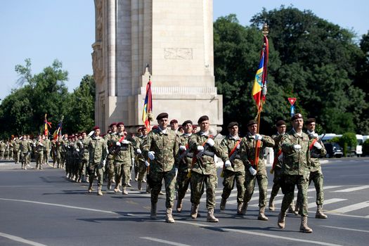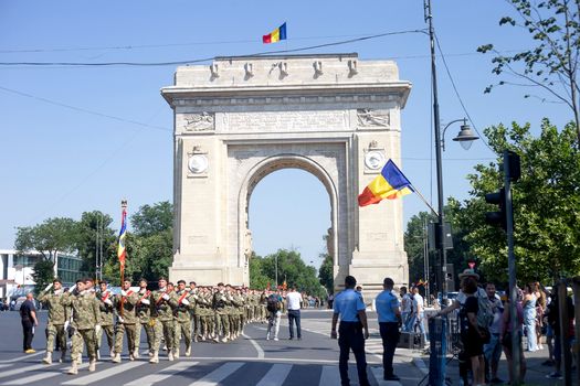 Astfel, pe sub Arcul de Triumf, vor defila detașamente pedestre reprezentând structurile militare ale Armatei României care au îndeplinit misiuni în acest teatru de operații, începând din anul 2002 și până în luna iunie a acestui an.