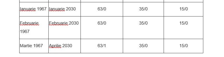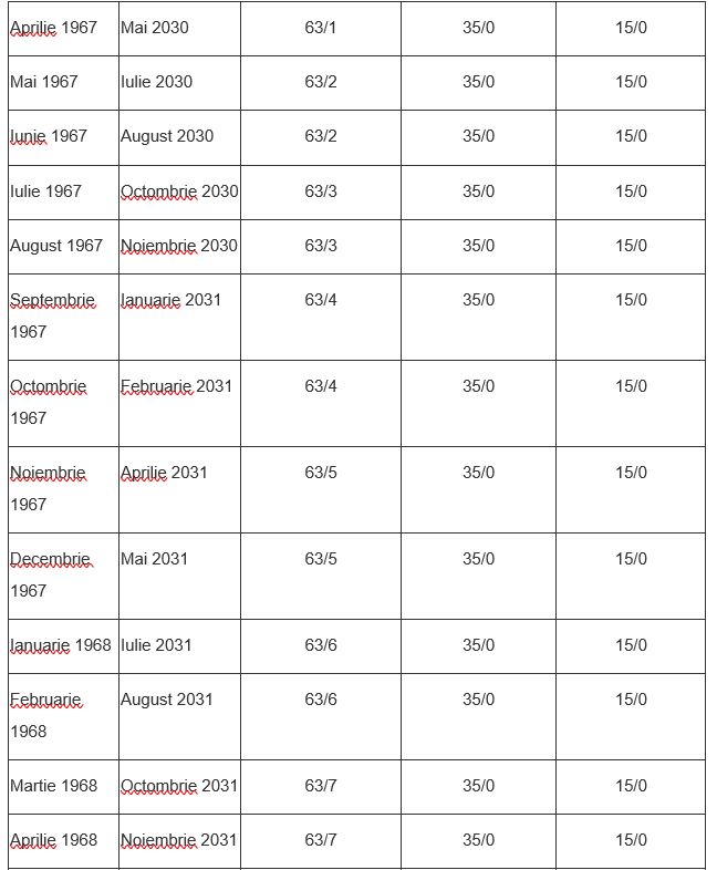 Pe de altă parte, începând cu anul 2030, vârsta de pensionare a femeilor va crește treptat, cu câte o lună la fiecare 2 luni calendaristice. În anul 2035, vârsta de pensionare a femeilor va ajunge la 65 de ani. Anexa nr. 5 – Vârste standard de pensionare, stagii complete și stagii minime de cotizare contributive poate fi descărcată AICI. Documentul a fost încărcat pe site-ul oficial al CNPP, data ultimei modificări fiind septembrie 2024.