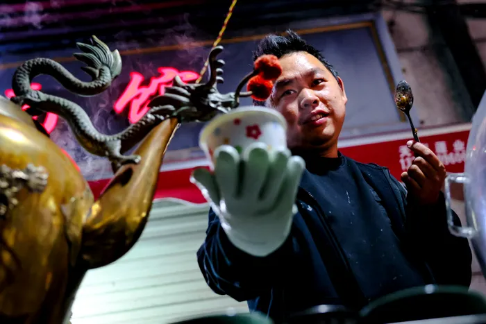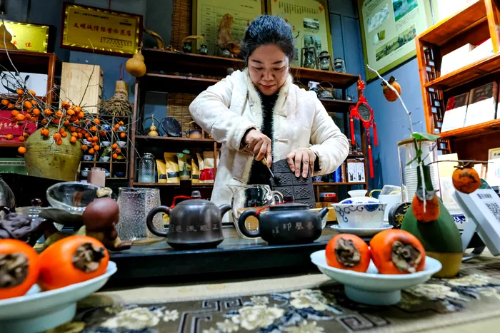 CHINA, HUBEI PROVINCE – DECEMBER 4, 2025: A tea ceremony in Ming-and-Qing Cobblestone Street in Yang Lou Dong (Credit Image: © Yuri Smityuk/TASS via ZUMA Press)