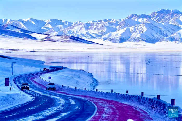 O vedere a lacului Sayram din prefectura autonomă mongolă Bortala, regiunea autonomă Xinjiang Uygur din nord-vestul Chinei, 14 ianuarie 2025. (Xinhua/Du Juanjuan)