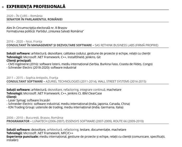 Între anii 2006-2010 a lucrat ca programator în mai multe domenii din domeniul IT. Din 2011 a plecat în Franțam unde a activat până în 2015. Un an mai târziu, și-a înființat propria firmă de consultanță în software și management, cu sediul în Nisa.