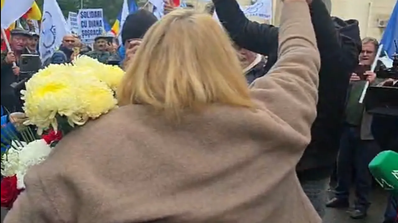 Puhoi de lume s-a strâns luni la Parchetul General, acolo unde este audiată Diana Șoșoacă. Susținătorii au venit pregătiți cu pancarte și vuvuzele, ca să-i semnaleze că nu e singură în fața „cenzurii”.