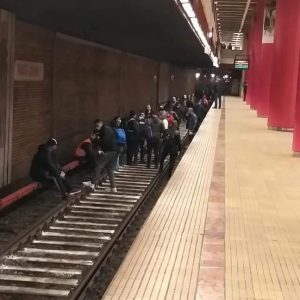 Oamenii coboară în tunel, pe calea de rulare, şi împiedicând pornirea la timp, conform programului normal, a trenurilor de pasageri, informează Metrorex.