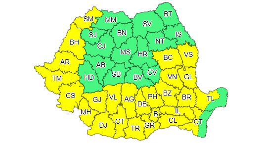 Cod galben de caniculă în România. Meteorologii au emis o avertizare de tip cod galben de caniculă și disconfort termic.