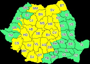 Meteorologii au emis și cod galben de instabilitate atmosferică temporar accentuată și ploi abundente valabil de sâmbătă, la ora 15:00, până duminică, la ora 23:00. Avertizarea vizează peste jumătate din țară, în special județele din sud-vestul, nord-estul și centrul țării.