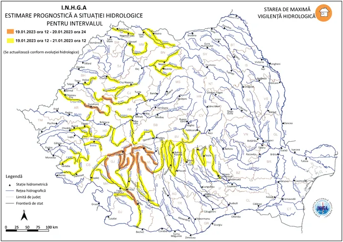 Institutul Naţional de Hidrologie şi Gospodărire a Apelor (INHGA) a extins Codul Portocaliu până vineri, 20 ianuarie, la miezul nopții.