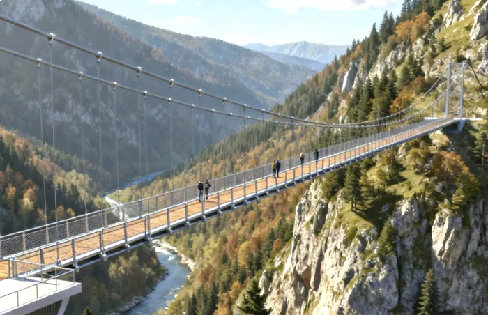 Astfel, proiectul va presupune construcţia unei punţi turistice suspendate de aproximativ 620 de metri lungime și 200 metri înălțime, care va traversa pitoreasca Vale a Rebrei la o înălţime de aproape 200 de metri şi va lega doi versanţi ai văii, scrie ZF.