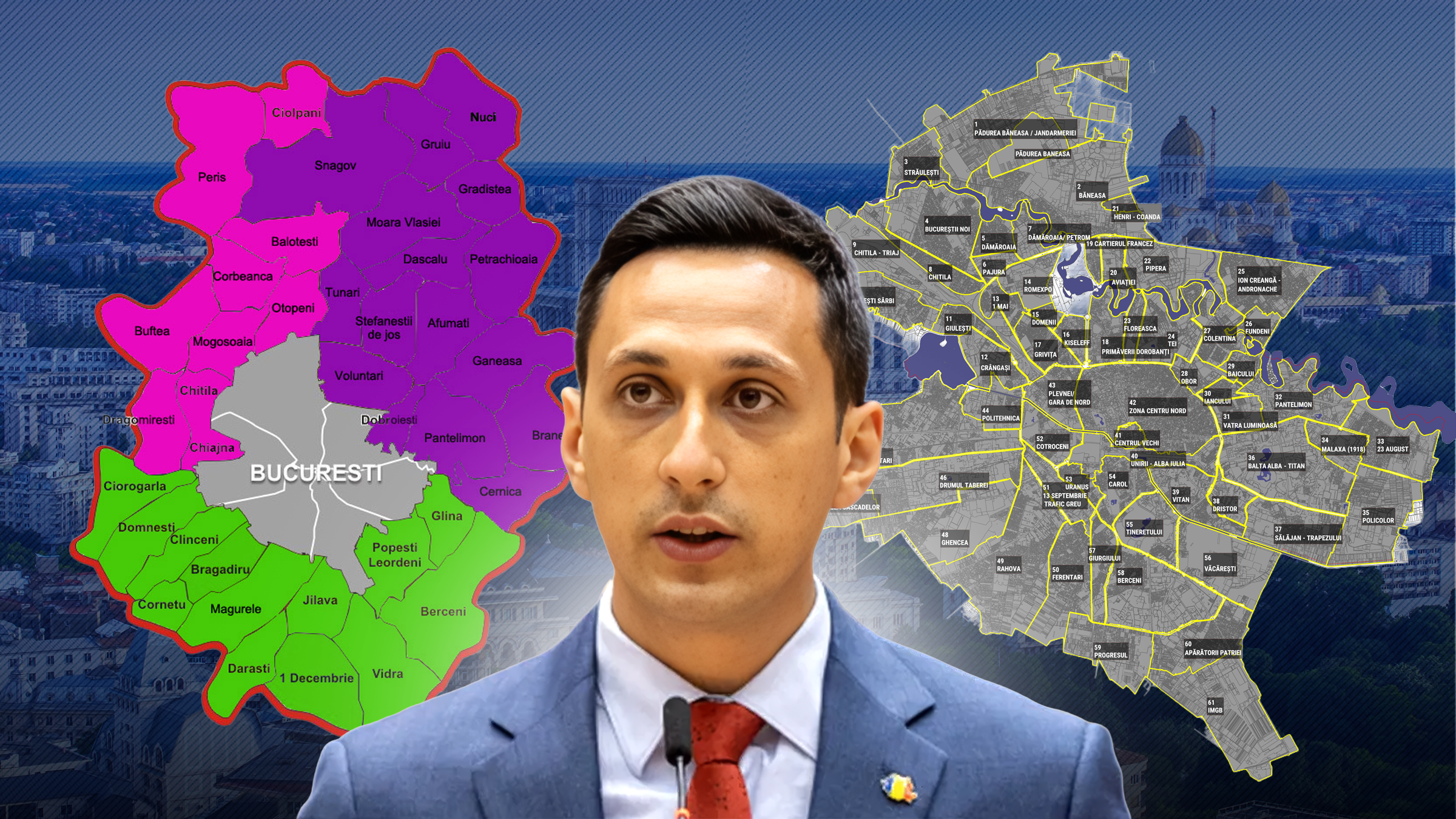 Consilierul premierului Ilie Bolojan, Vlad Gheorghe, vrea să unească, prin referendum, Ilfov cu Bucureşti şi, astfel, să creeze „un singur Bucureşti, cu o administrație unică pentru tot arealul metropolitan”.