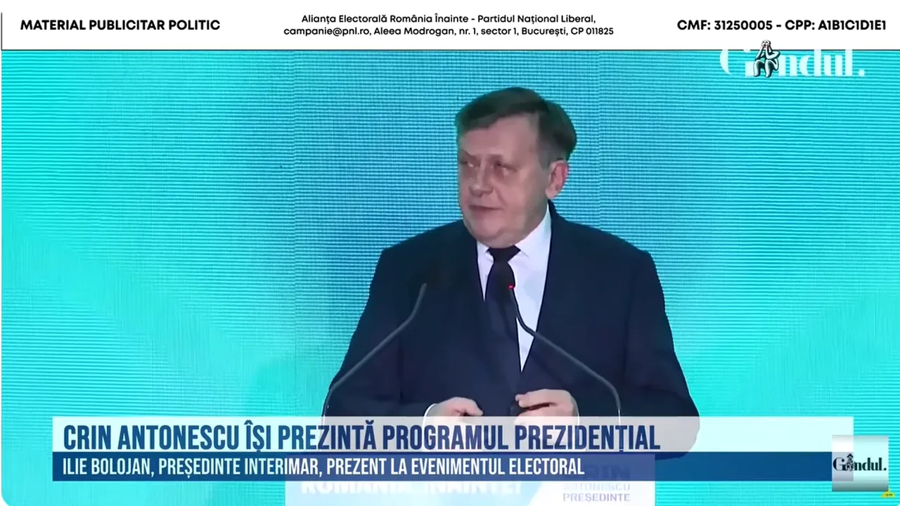 Crin Antonescu și-a lansat programul prezidențial sub sloganul „România, Înainte!” Ilie Bolojan: Am încredere în Crin Antonescu