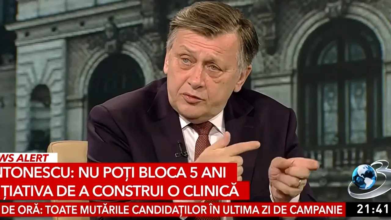 Crin Antonescu a venit în platoul Antena 3 și a vorbit despre contracandidatul său la alegerile prezidențiale, Nicușor Dan. El a făcut referire la episodul spitalului Sanador, pentru care Nicușor Dan a întârziat doi ani să semneze autorizația de construire. El a spus: ”E singurul candidat care a dovedit că nu respectă justiția și hotărârile justiției în repetate rânduri”.