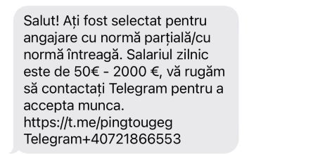 Te numeri printre cei care au primit mesajul pe Telegram că ai fost selectat să fii angajat cu un salariu zilnic între 50-2000 de euro? Sună prea frumos ca să fie adevărat? Ai perfectă dreptate! Gândește-te însă la asta înainte să dai click și să le dai șansa infractorilor să obțină accesul la datele tale personale, pe care le pot folosi apoi pentru a deschide, tot în numele tău, conturi la bănci din străinătate. Directorul Institutului de Cercetare și Prevenire a Criminalității, Ramona Dabija, a explicat ce nu trebuie să facă persoanele care primesc un astfel de mesaj.