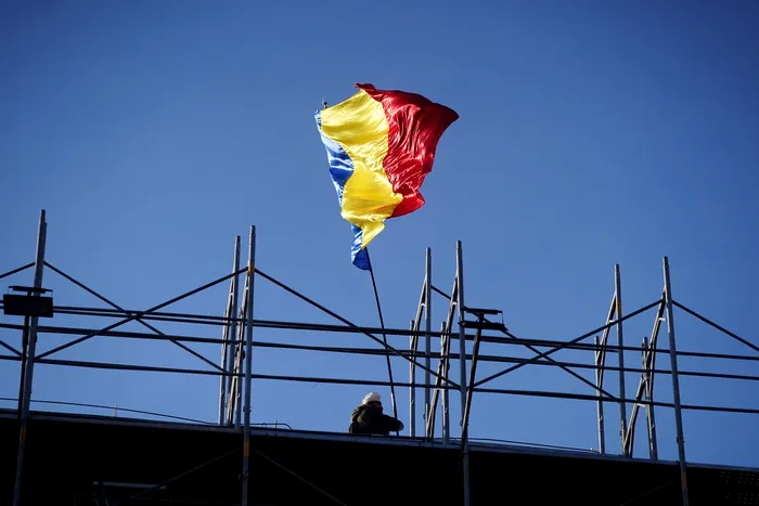 „Stegarul Dac” s-a urcat pe un stâlp în fața Palatului Parlamentului
