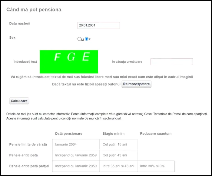 Românii trebuie să completeze în primul rând data naşterii. Urmează apoi sexul, unde au de ales dintre masculin sau feminin. În final, trebuie să introducă un text de verificare şi să apese butonul „calculează”.